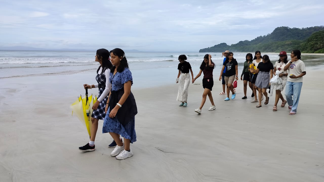 Their visit to the historic Cellular Jail, was a poignant reminder of India’s struggle for independence. As students wandered through the corridors of this notorious prison, they gained a profound understanding of the sacrifices made by our freedom fighters. The sound and light show in the evening provided a dramatic and emotional retelling of the island’s history, leaving everyone reflecting on the importance of freedom. Next on their itinerary was the world-renowned Radhanagar Beach, often hailed as one of the most beautiful beaches globally. With its pristine white sand, crystal-clear waters, and breathtaking sunsets, students had the opportunity to relax, play beach games, and soak in the natural splendor that surrounded them. Havelock’s underwater world awaited as students embarked on an exhilarating scuba diving expedition. Under the guidance of certified instructors, they plunge into the azure depths, discovering a kaleidoscope of marine life and vibrant coral reefs. The experience fosters teamwork, courage, and a profound appreciation for the wonders beneath the ocean’s surface. The students also visited Chidiya Tapu, known as the ‘Bird Island.’ Students observed a myriad of avian species, capturing the beauty of nature through their lenses. The day concludes with a visit to Munda Pahar, where panoramic vistas unfold, offering a perfect backdrop for group photos and shared memories.